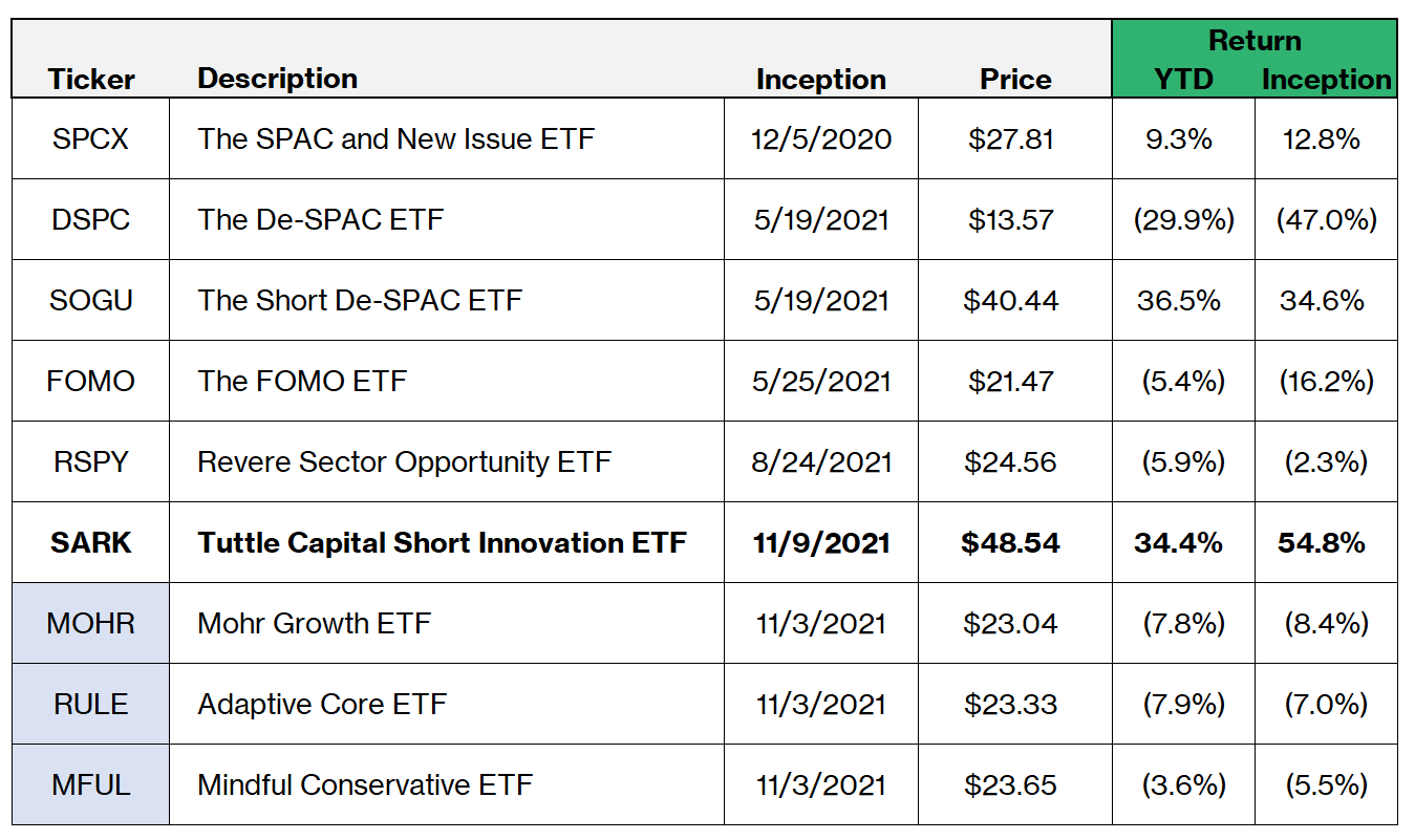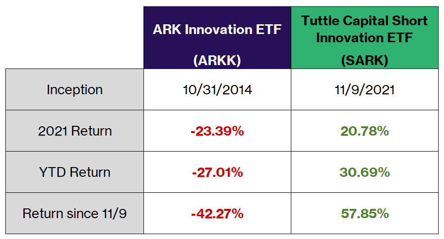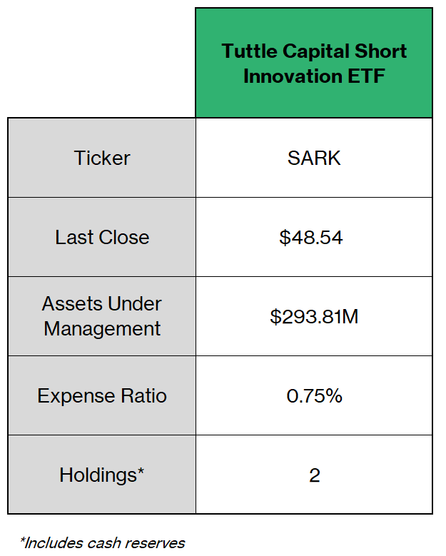 We’re back with another ETF report, except we’re flipping the script and looking at an inverse fund: Tuttle Capital Short Innovation ETF (SARK).
